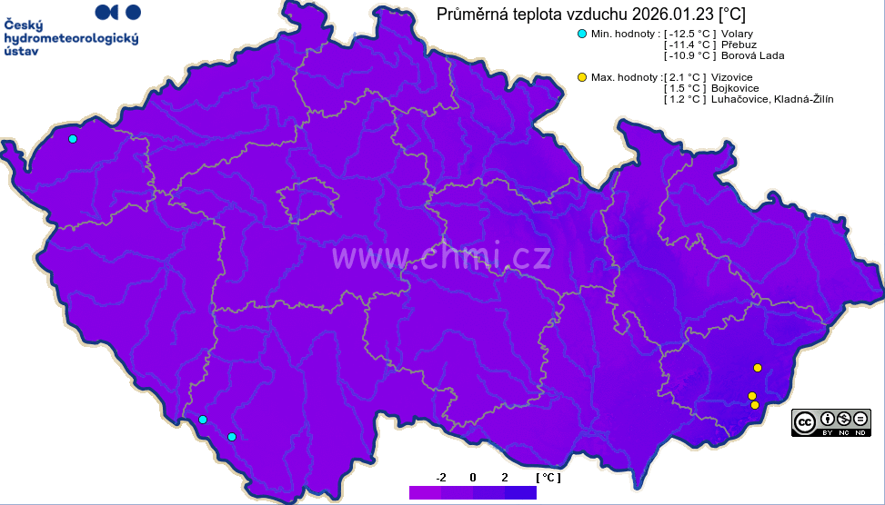 Aktuální počasí v České republice - vybrané zajímavé stanice