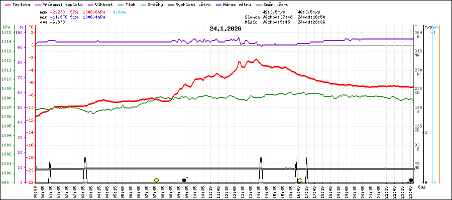| Minimální teplota: | -11.3°C | v 00:00 |