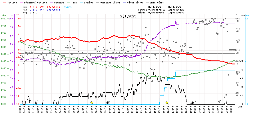 Průměrná teplota:2.1°C (průměr vąech hodnot)