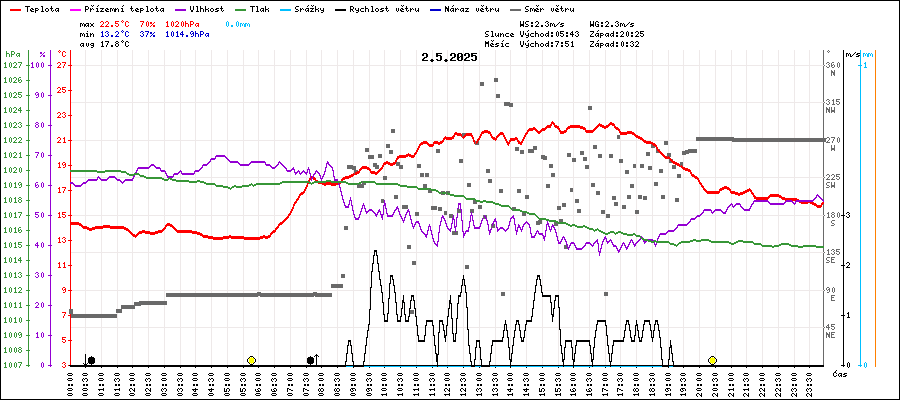 Průměrná teplota:18.1°C (tepl. v 8 + 15 + 2 x 22 h)