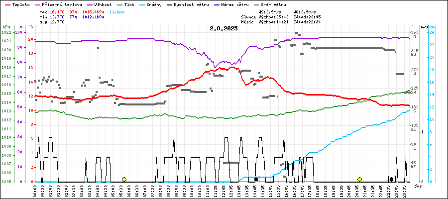 Průměrná teplota:12.3°C (tepl. v 8 + 15 + 2 x 22 h)
