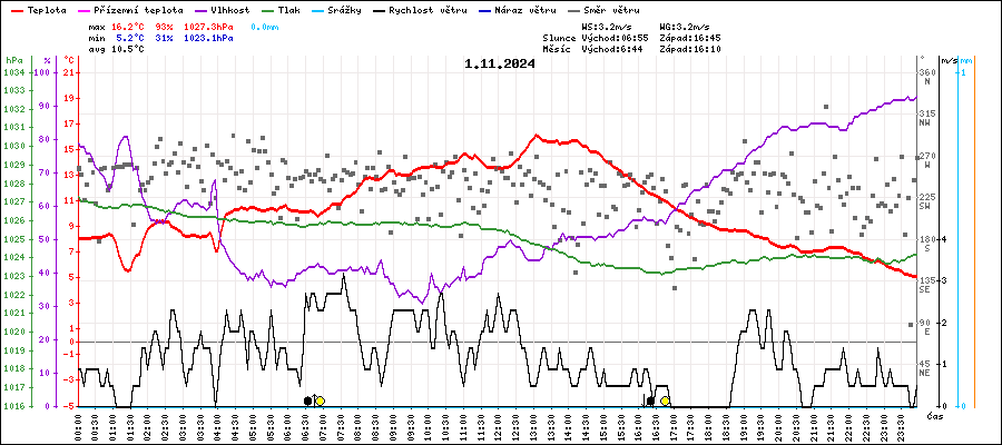 | Maximální teplota: | 16.2°C | v 13:05 |