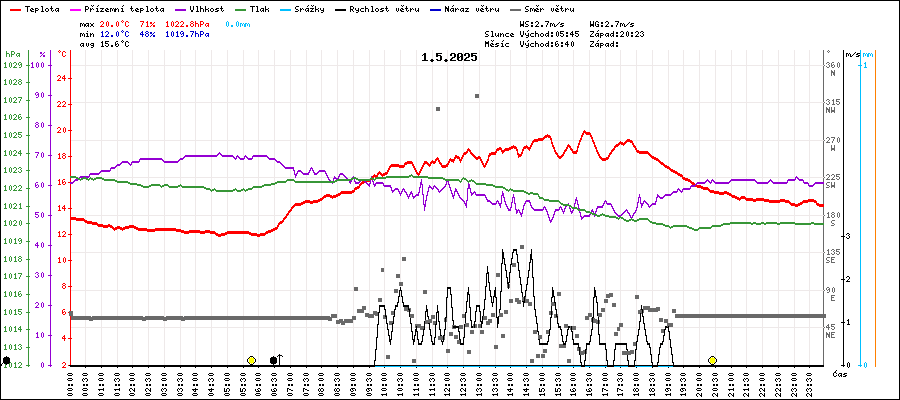 Průměrná teplota:16.0°C (tepl. v 8 + 15 + 2 x 22 h)
