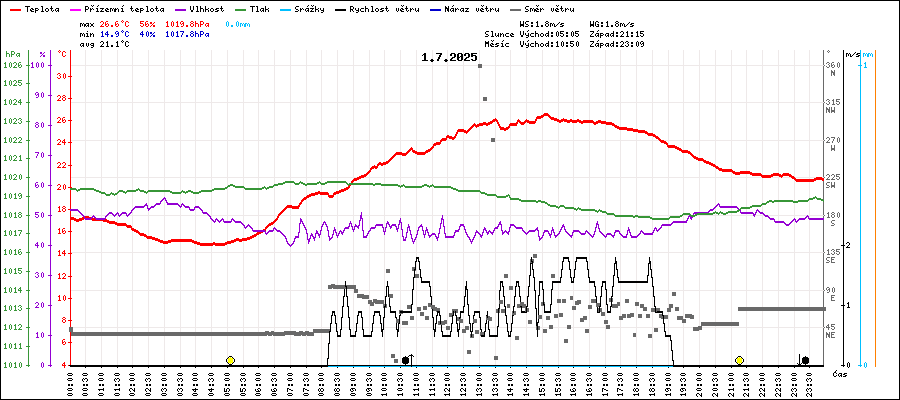 | Maximální teplota: | 26.6°C | v 15:05 |
