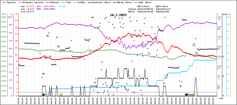 | Minimální teplota: | 9.6°C | v 04:10 |