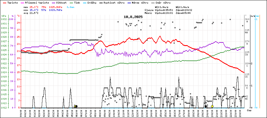 | Maximální teplota: | 25.3°C | v 14:55 |