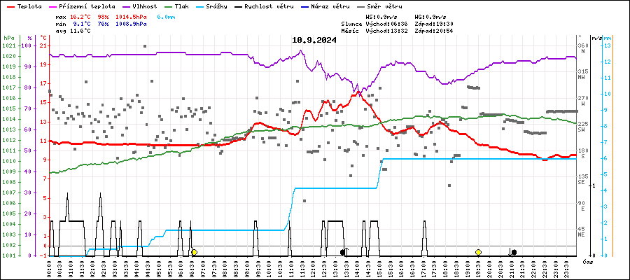 | Maximální teplota: | 16.2°C | v 14:00 |