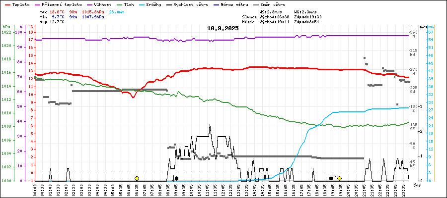 | Minimální teplota: | 9.7°C | v 06:20 |