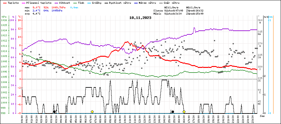 | Maximální teplota: | 9.0°C | v 10:45 |