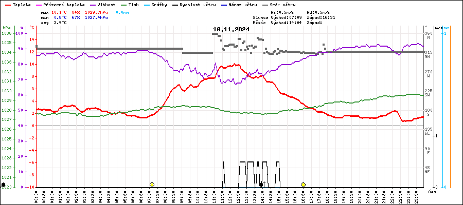 | Maximální teplota: | 10.1°C | v 12:15 |