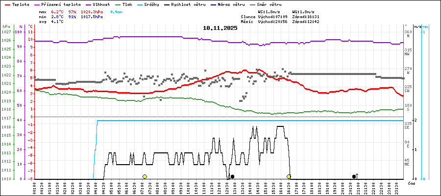 | Maximální teplota: | 6.2°C | v 14:35 |