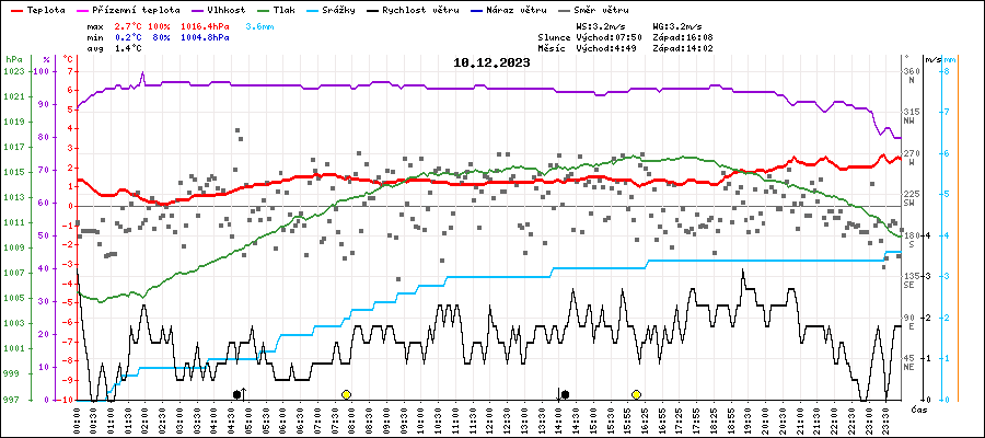 | Maximální teplota: | 2.7°C | v 23:25 |