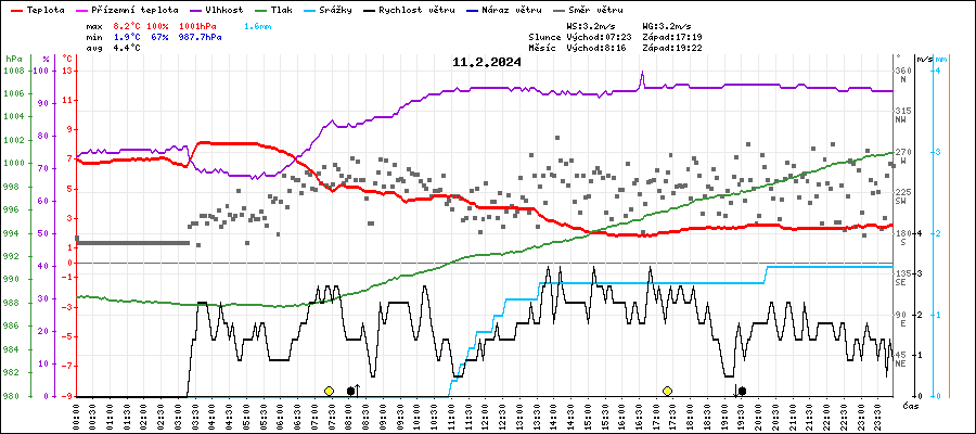 | Maximální teplota: | 8.2°C | v 03:40 |