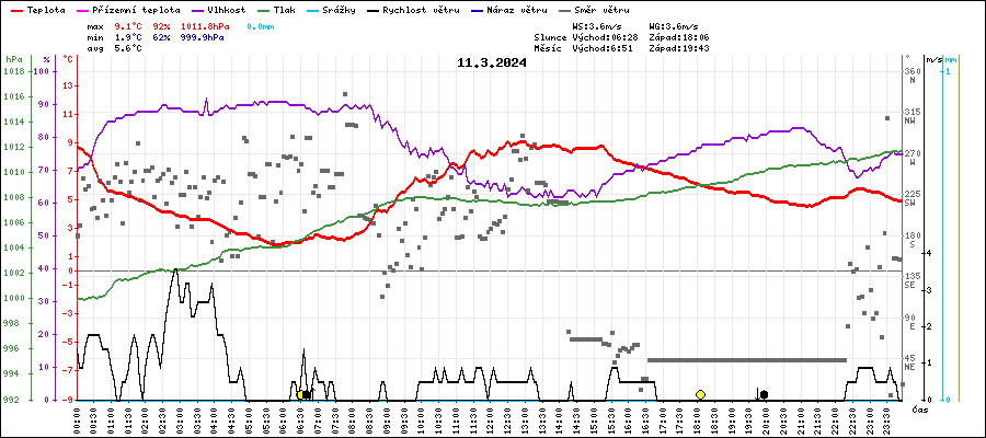 | Maximální teplota: | 9.1°C | v 12:30 |