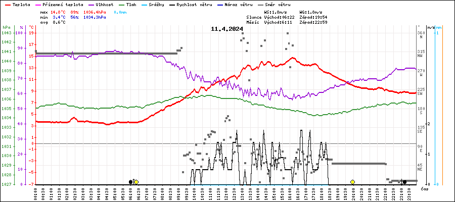 | Maximální teplota: | 14.8°C | v 16:10 |