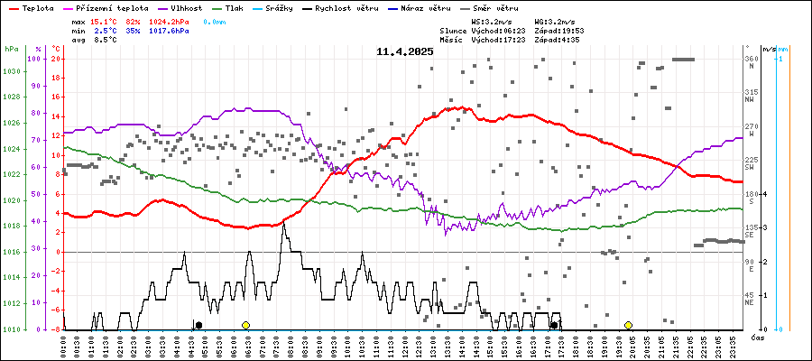 | Maximální teplota: | 15.1°C | v 14:00 |