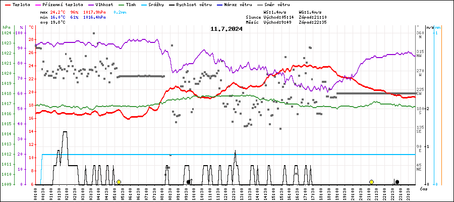 | Maximální teplota: | 24.2°C | v 16:55 |