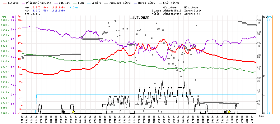 | Maximální teplota: | 18.2°C | v 14:30 |