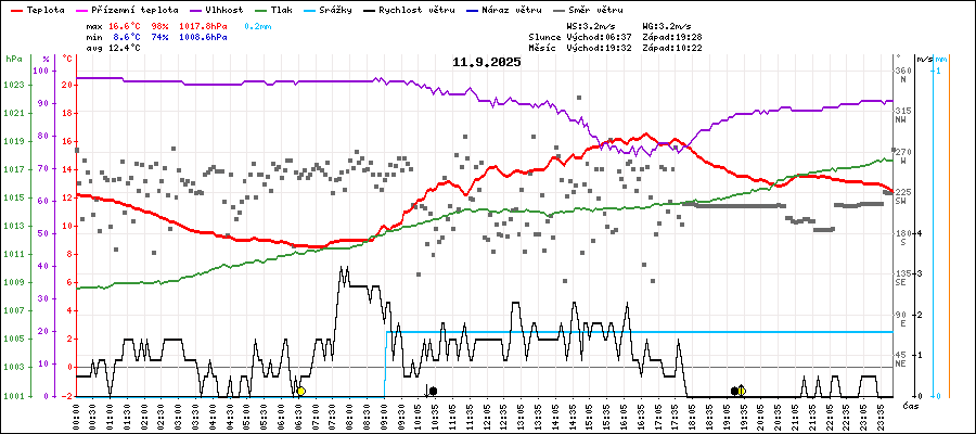 | Minimální teplota: | 8.6°C | v 06:50 |