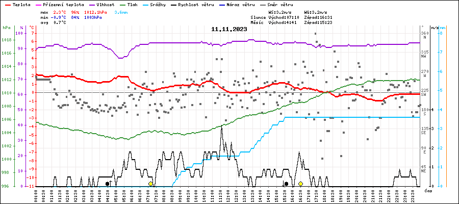 | Maximální teplota: | 2.3°C | v 00:00 |