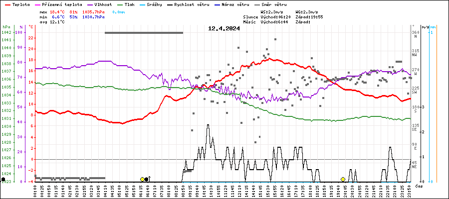 | Maximální teplota: | 18.4°C | v 15:35 |