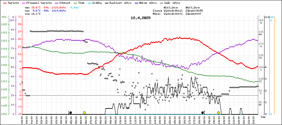 | Maximální teplota: | 15.6°C | v 16:00 |