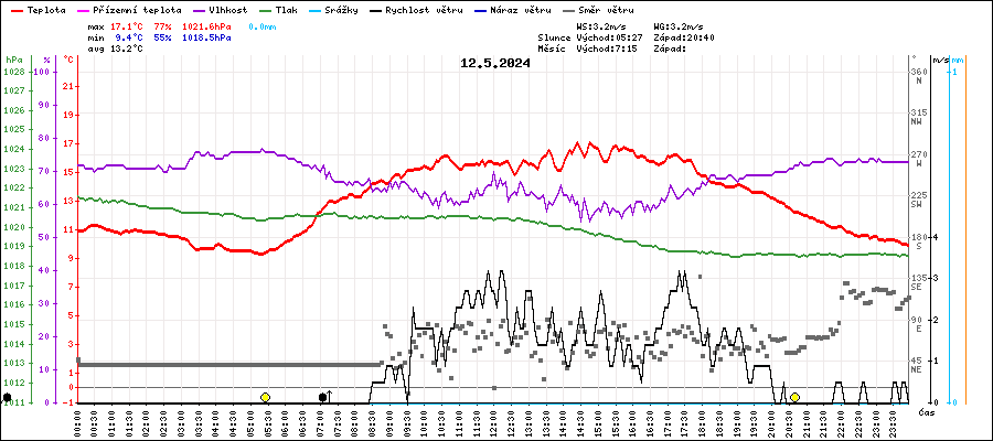 | Maximální teplota: | 17.1°C | v 14:25 |