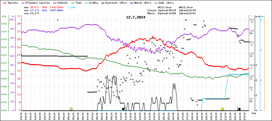 | Minimální teplota: | 17.1°C | v 06:40 |