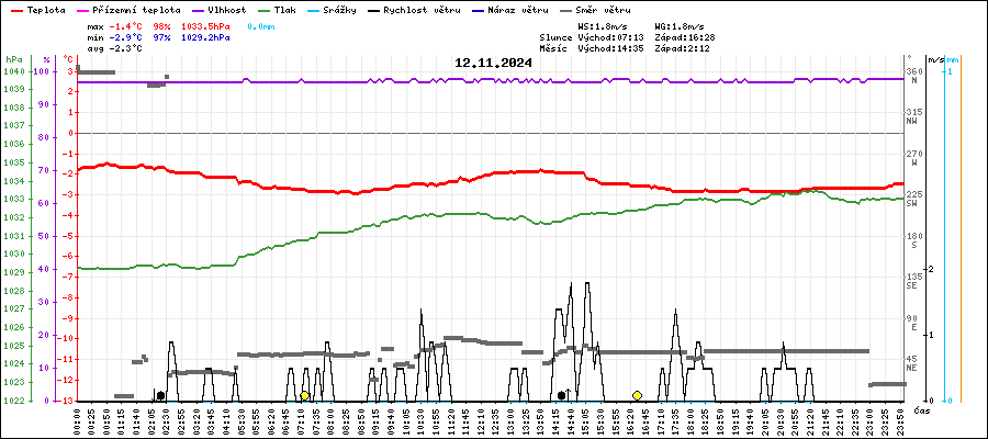 | Minimální teplota: | -2.9°C | v 08:10 |