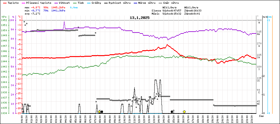 | Průměrná teplota: | -7.4°C | (tepl. v 7 + 14 + 2 x 21 h) |