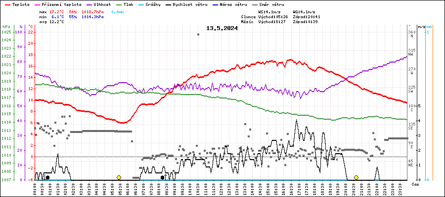 | Maximální teplota: | 17.2°C | v 16:25 |