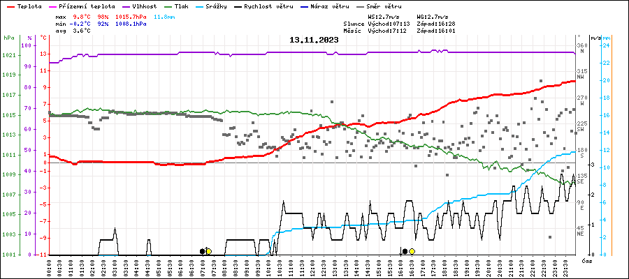 | Maximální teplota: | 9.8°C | v 23:45 |