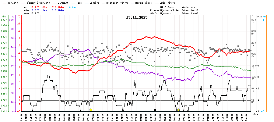 | Maximální teplota: | 17.6°C | v 13:00 |