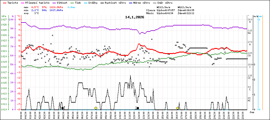 | Minimální teplota: | 2.2°C | v 08:15 |