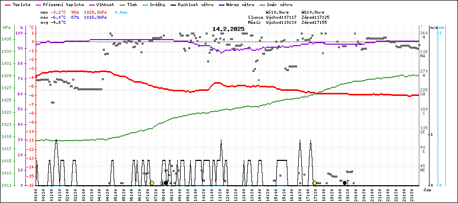 | Minimální teplota: | -6.0°C | v 23:15 |