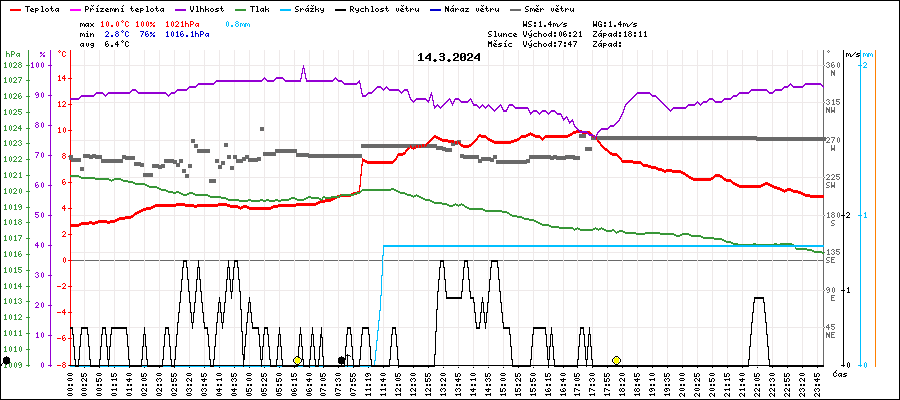 | Minimální teplota: | 2.8°C | v 00:00 |