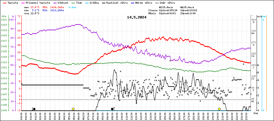| Maximální teplota: | 17.4°C | v 14:50 |