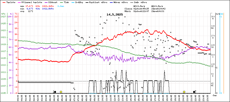 | Maximální teplota: | 17.6°C | v 16:00 |