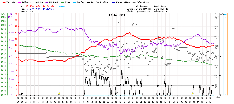 | Maximální teplota: | 17.1°C | v 13:35 |