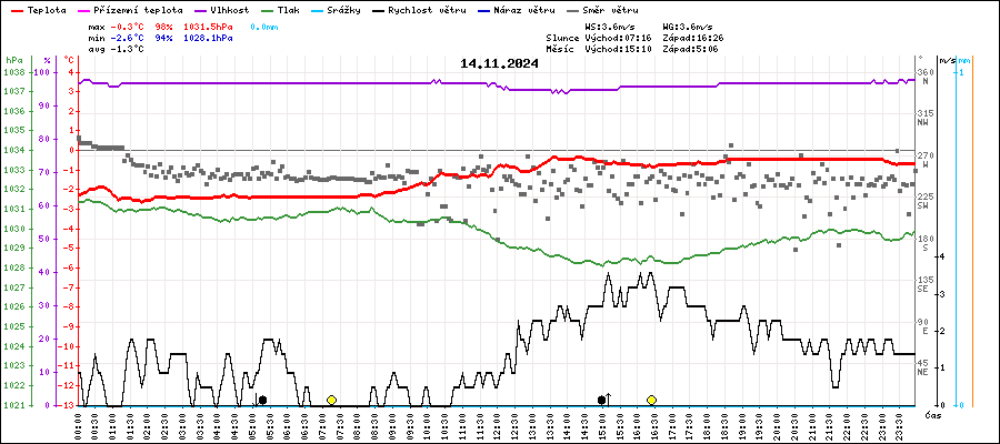 | Minimální teplota: | -2.6°C | v 01:50 |