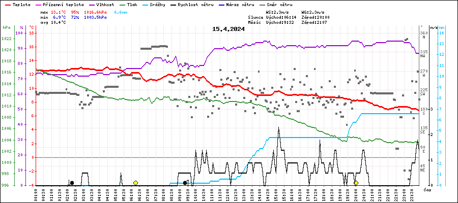 | Minimální teplota: | 6.9°C | v 23:55 |
