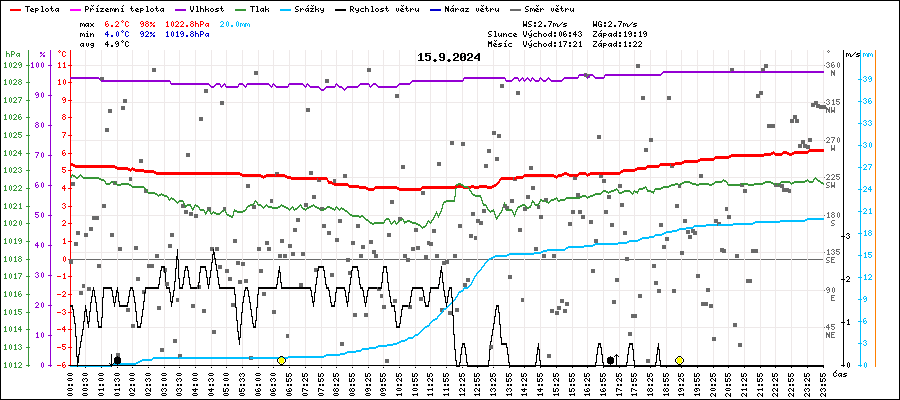| Maximální teplota: | 6.2°C | v 23:30 |
