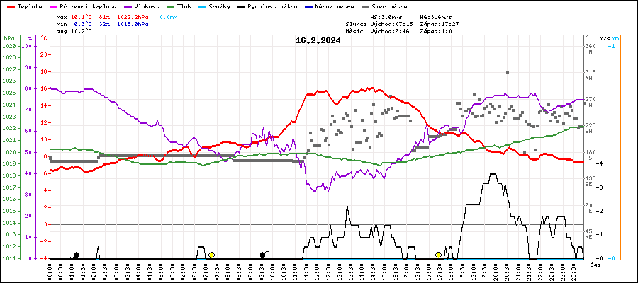 | Maximální teplota: | 16.1°C | v 14:15 |