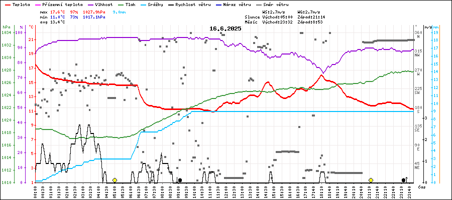 | Maximální teplota: | 17.6°C | v 00:00 |