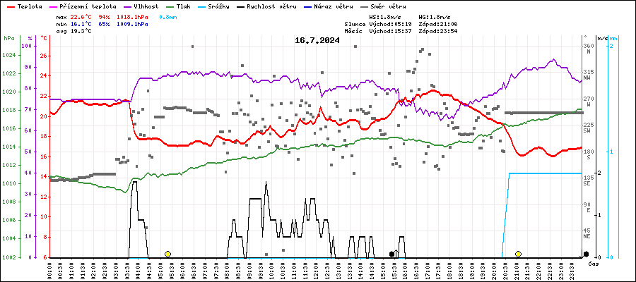 | Minimální teplota: | 16.1°C | v 22:35 |