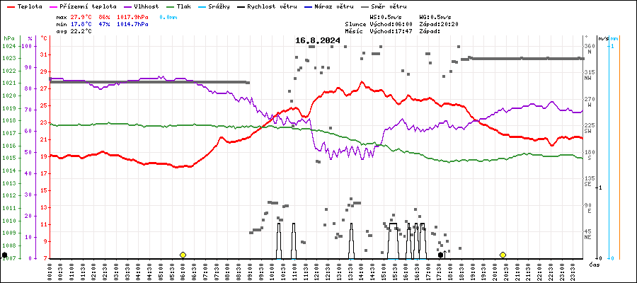 | Minimální teplota: | 17.8°C | v 05:40 |