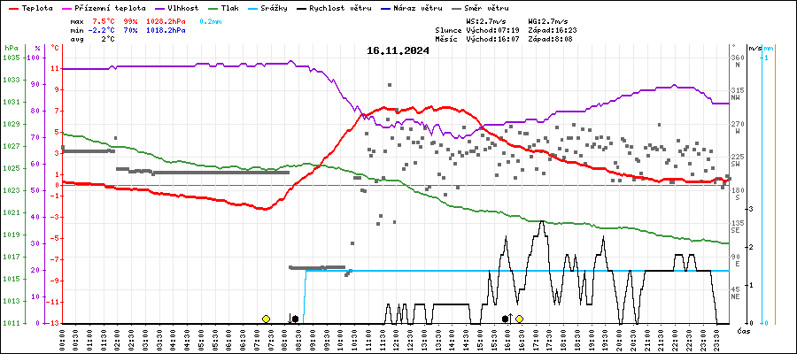 | Minimální teplota: | -2.2°C | v 07:15 |