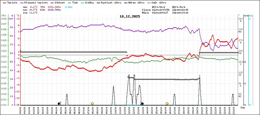 | Maximální teplota: | 6.2°C | v 21:10 |