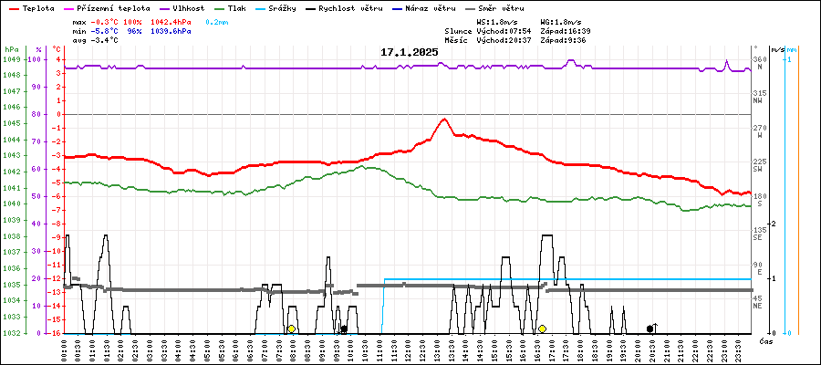 | Průměrná teplota: | -3.6°C | (tepl. v 7 + 14 + 2 x 21 h) |