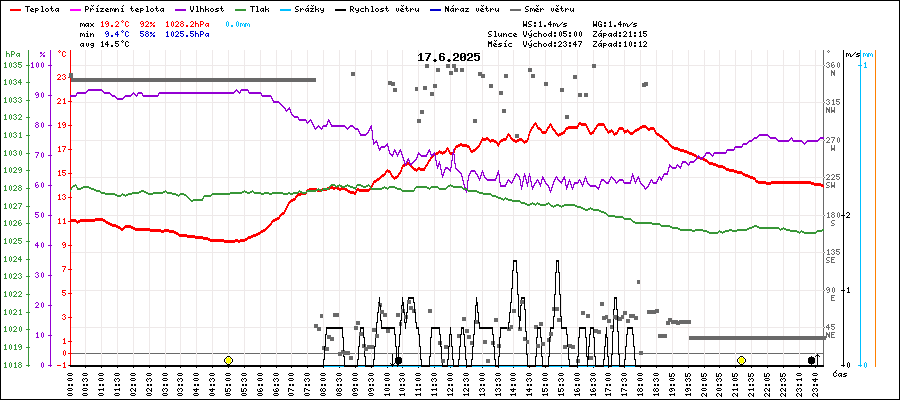 | Maximální teplota: | 19.2°C | v 14:40 |